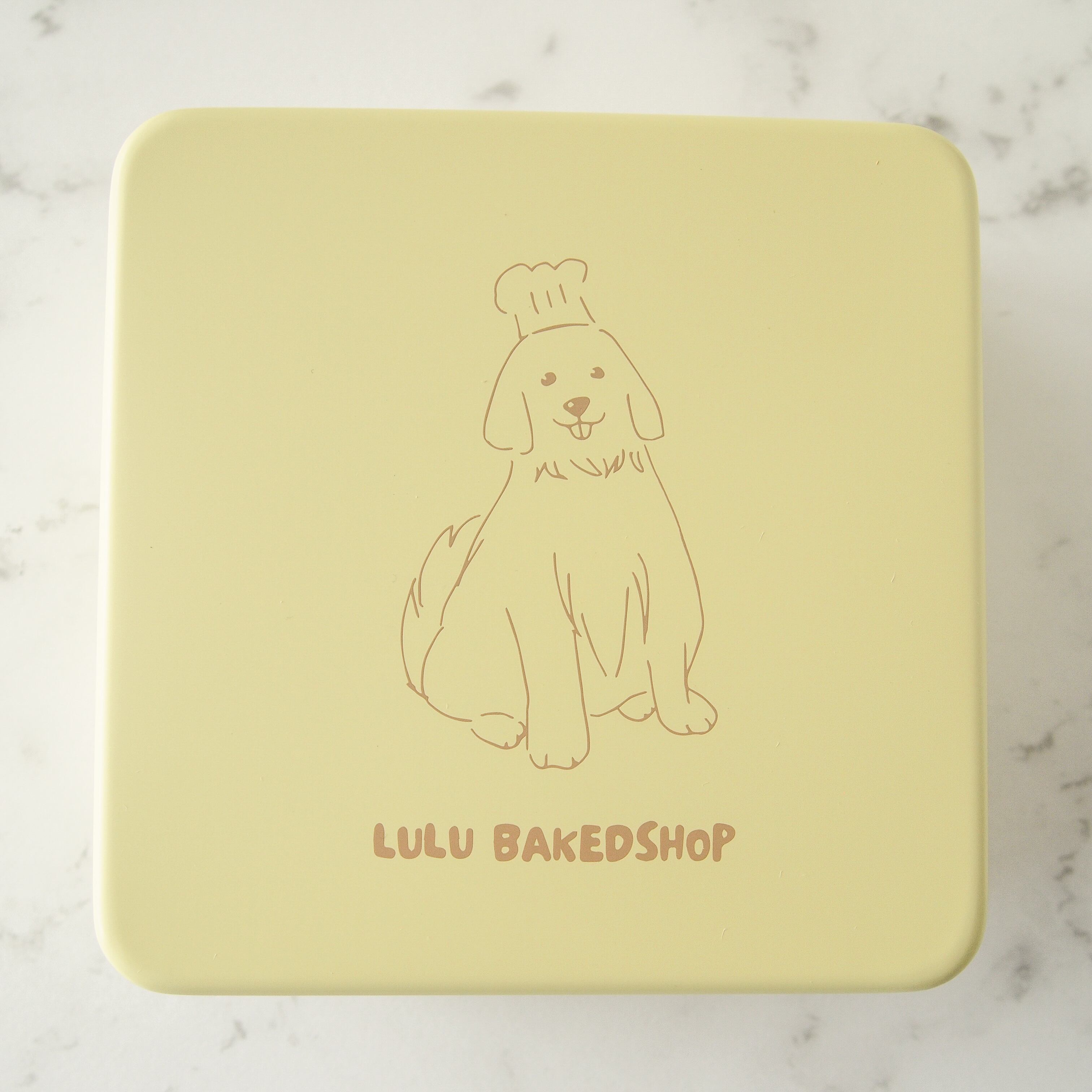 食べたあとも可愛いく使える犬モチーフのクリームイエローの缶です。